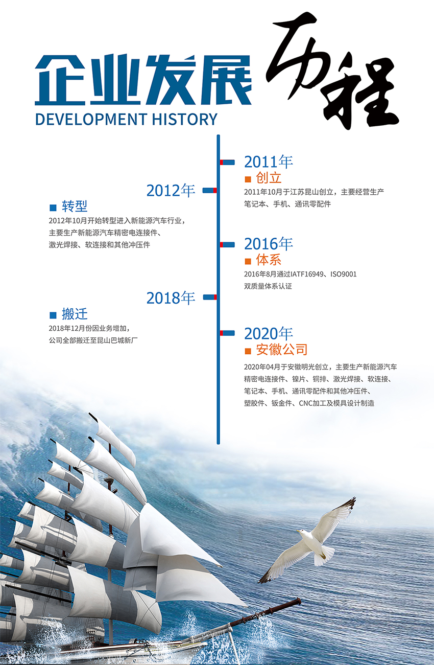 久興源起源于江蘇昆山,2011年創立江蘇久興源新能源科技有限公司,2012年10月開始轉型進入新能源汽車行業。安徽久興源新能源科技集團有限公司于2020年04月在安徽省滁州市明光市經濟開發區建立,致力于新能源動力電池模組配件的研發、設計、生產與銷售,主要產品為18650、26650、32650、方形與軟包電池用的電池鎳片、鍍鎳鋼片、銅片、鋁片、銅排、鋁排、銅軟連接、鋁軟連接、銅鎳激光復合片、鋁鎳激光復合片等產品,產品廣泛應用于手機、電腦、電動工具、電車汽車、儲能、航天及軍事等高端領域,憑借多年的技術力量及專業化的技術團隊,已為眾多品牌車型提供了一站式新能源三電系統精密結構件,深得廣大客戶的一致認可與信賴。在品質保證方面,公司獲得了法國貝爾認證公司頒發的IATF16949:2016和 ISO9001:2015雙質量體系認證,并擁有一套完整的品質保證系統和一批專業化的品質管理和技術人員,公司擁有新能源Pack類精密連接件專利36項,并獲得國家級高新技術企業、江蘇省民營科技企業、昆山市科技研發中心、昆山市工程技術研究中心等稱號。公司依托多年的行業內深耕拓荒式的專業經驗積累,不斷開拓創新,服務更多客戶,未來公司將更專注于新能源領域的發展,為廣大客戶提供動力電池模具塑膠支架、線束、電池殼等配套產品,以便于廣大客戶一站式采購,公司為成為全球新能源領域內三電系統精密結構件一站式服務提供商而不懈努力!